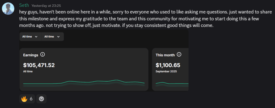 "After failing with dropshipping and Amazon FBA, their Fannie optimization strategies helped me earn $6.5K part-time in just one month of joining the program"